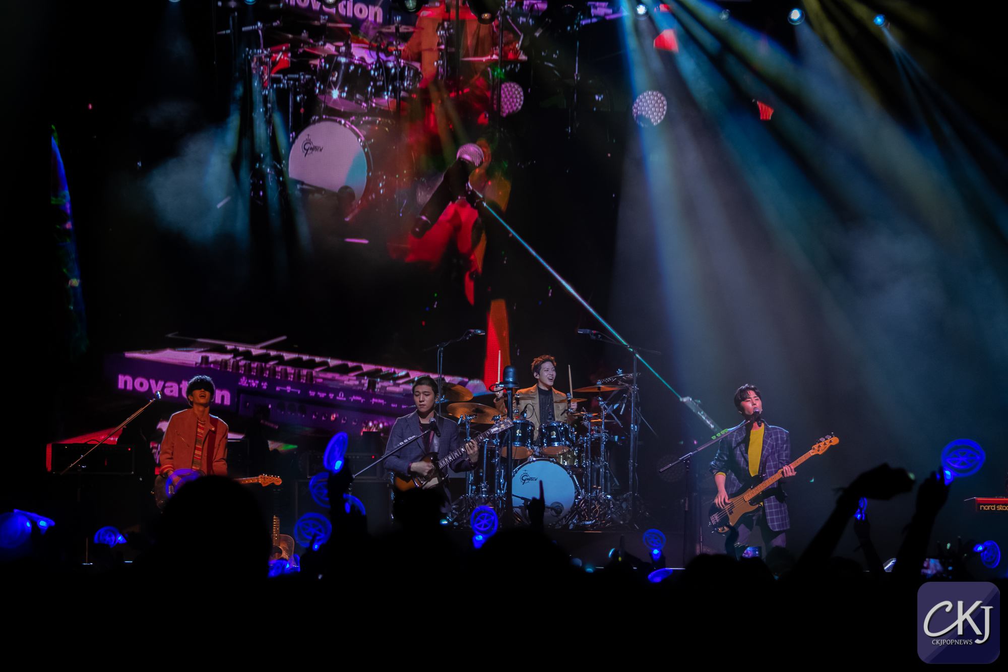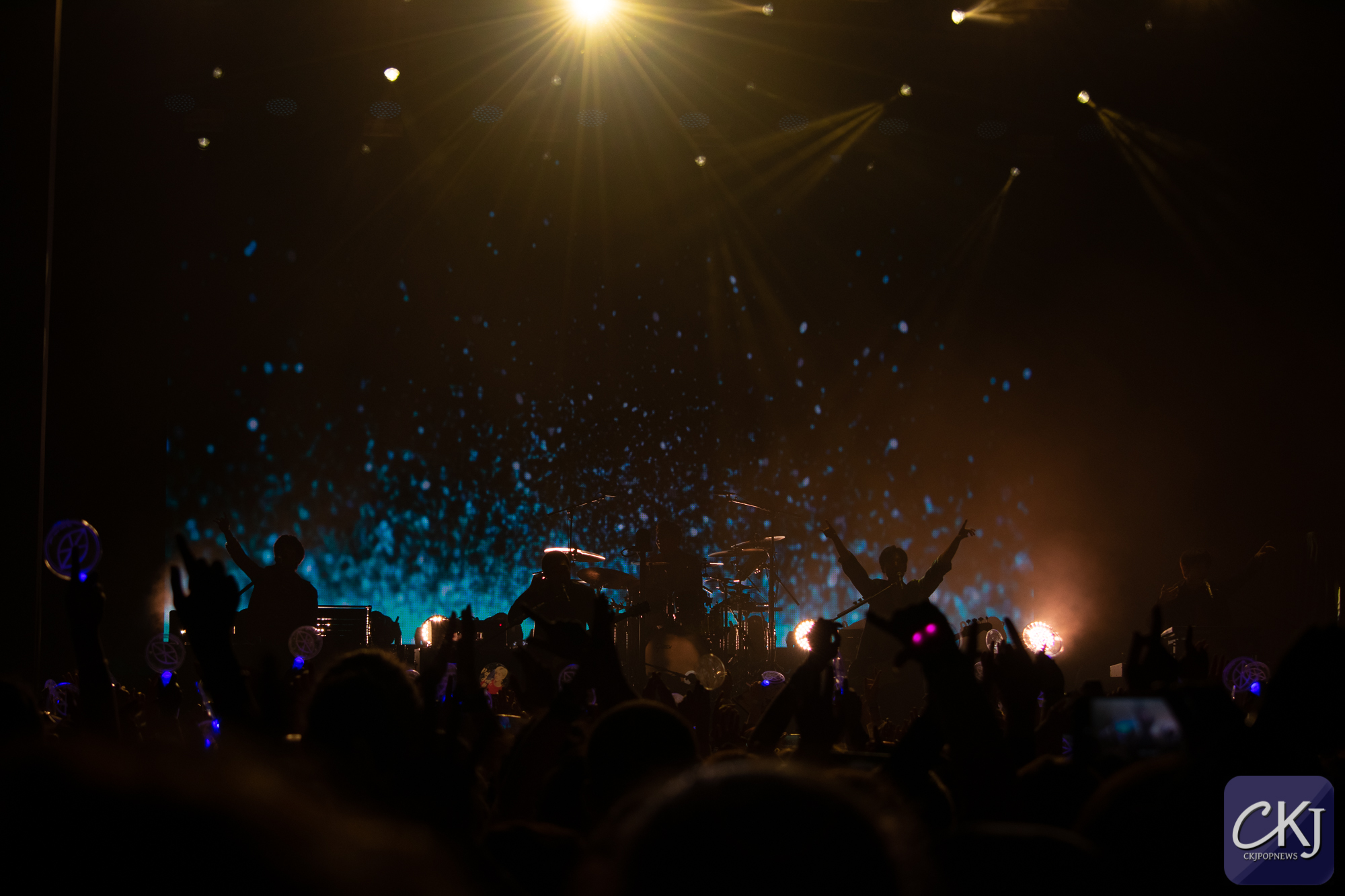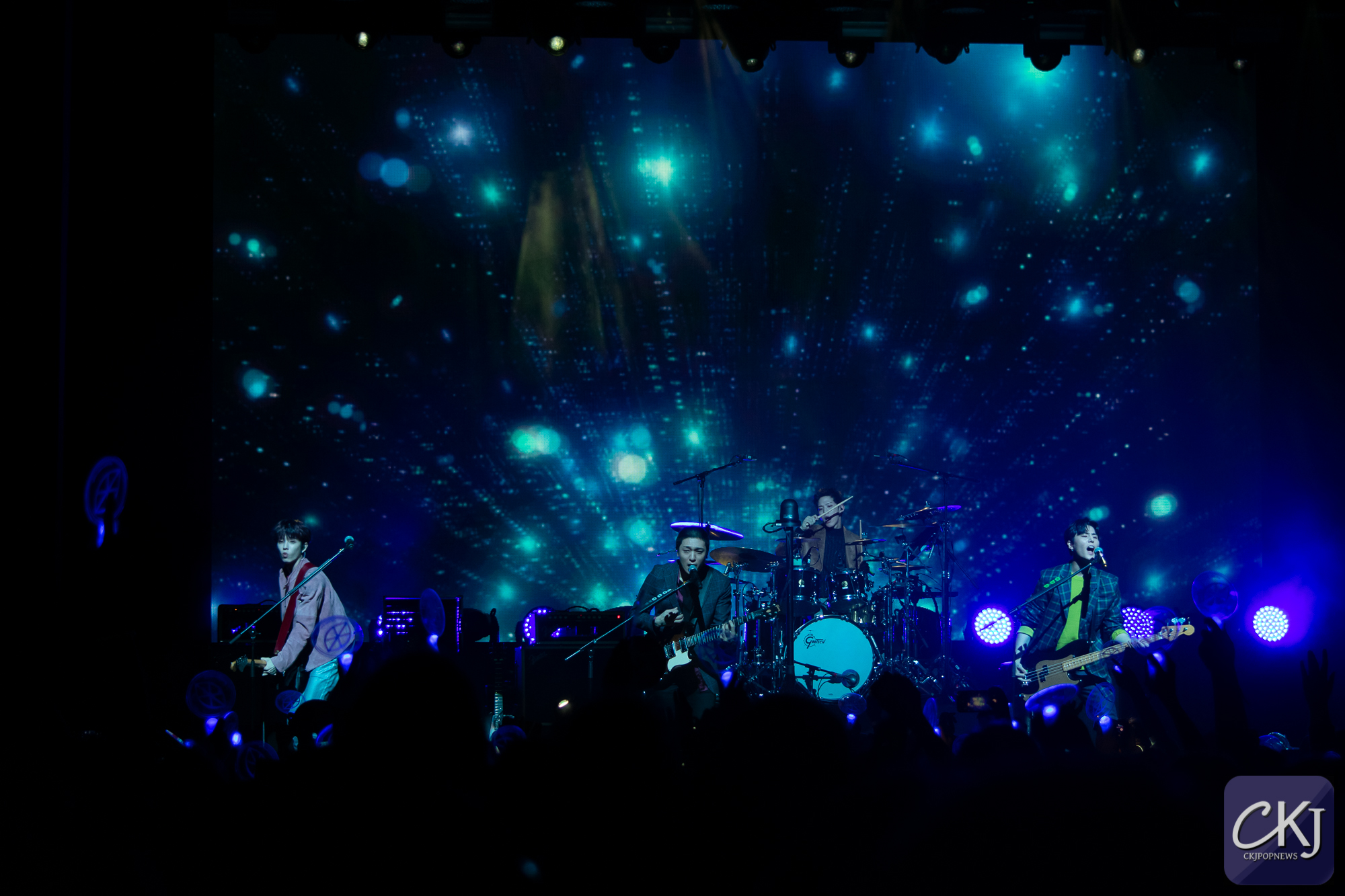 Les artistes ont ensuite mis quelques minutes à se préparer avant d’entamer l’introduction et la première chanson qui a immédiatement plongé la salle dans une ambiance puissante. L’un des plus gros tubes des DAY6, “I Smile”, a littéralement donné le sourire à tous les fans qui chantaient en chœur avec les artistes. Un océan de bleu a englouti la salle avec les lighsticks conçus par les fanbases pour l’événement. L’arrière plan visuel qui alternait sur un jeu de couleurs en rythme avec le morceau laissait penser que la scénographie avait été minutieusement pensée. En même temps, les artistes communiquaient leur enthousiasme en affirmant qu’ils aimaient Paris.