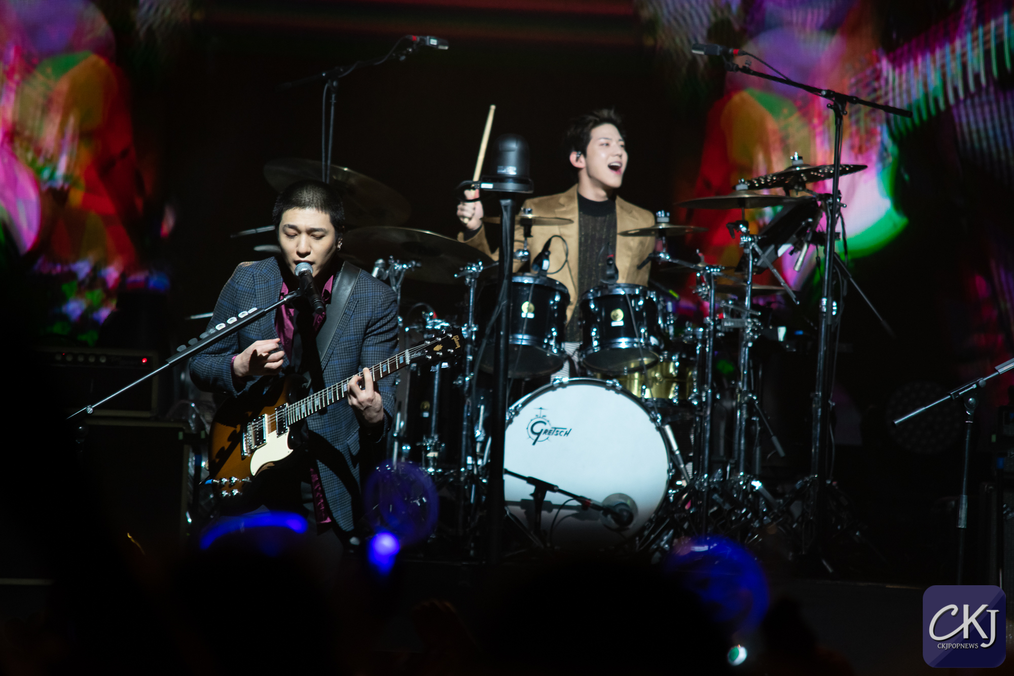 Sur “Better Better”, l’ambiance est montée d’un cran et toute la salle s’est mise à sauter au rythme du refrain. YoungK n’a pas manqué de sourire aux fans tout en slappant les cordes de la basse. Toujours plus colorés, plus enjoués et passionnés, les artistes ont entraîné la salle avec “Whatever” et “Say Wow”, deux morceaux aux refrains entêtants, tirés des albums “Moonrise” et “Sunrise”. Plus pop, ces deux morceaux reflètent la particularité du groupe, avec des sonorités uniques, des timbres de voix nuancés et denses. Si le groupe peut avoir cette couleur propre au band romantique, il peut aussi se montrer plus féroce avec une instrumentation plus rock et plus acharnée.