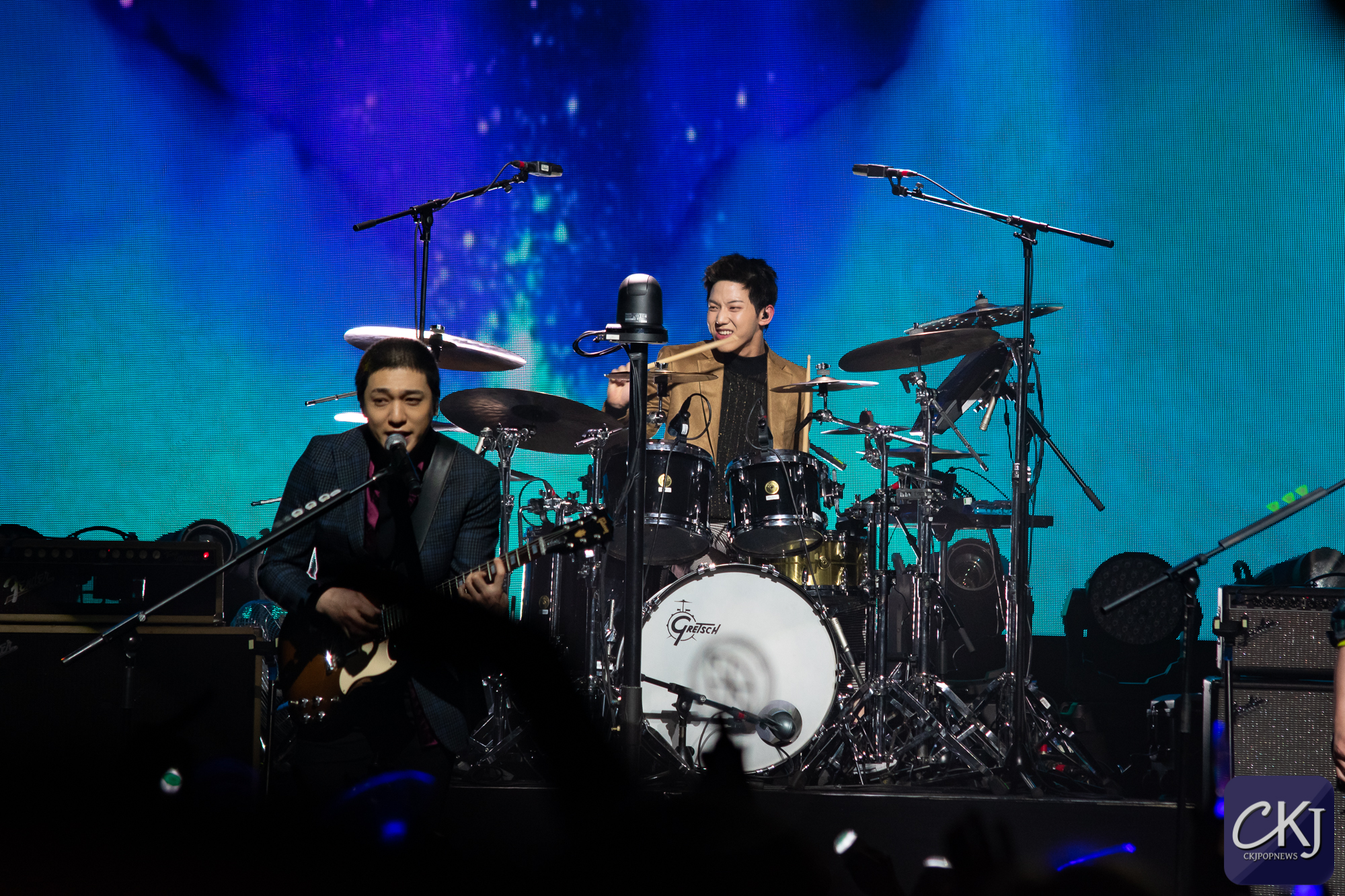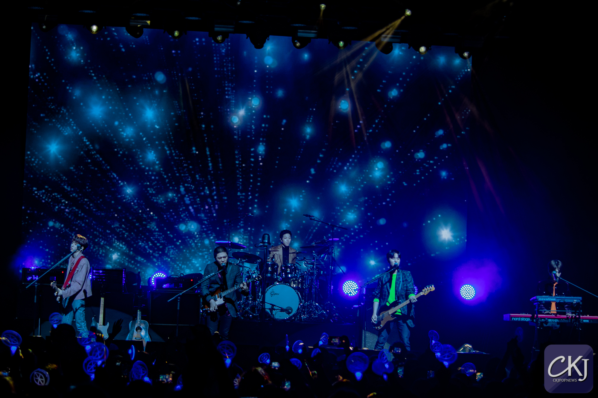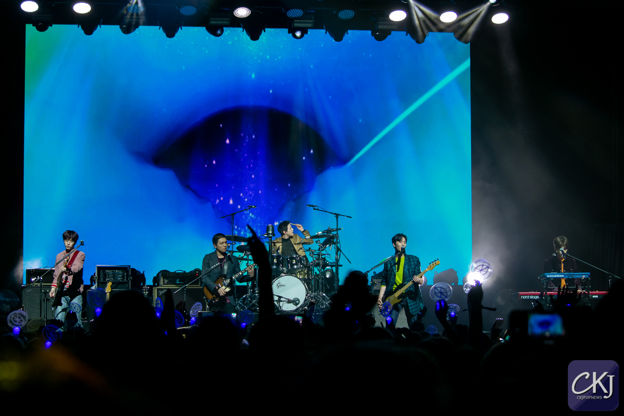 Deuxième lancer de confettis sur “Dance Dance”, morceau énergique sur lequel Sungjin a montré ses talents de rappeur, sous les encouragements des fans. Les garçons prouvent qu’ils ont la maîtrise non seulement de leurs instruments, mais aussi du moment entier, tout en profitant de l’atmosphère que le public a lui aussi crée. Les grosses basses ont résonné sur “What Can I Do”, moment où les membres se sont montrés complices. Jae encourageait davantage le public à lever les mains en rythme. C’est sur ce genre de chanson avec une forte présence des instruments que l’on pouvait voir que le son dans la salle avait été particulièrement bien réglé. Nous avons pu profiter du son de chaque instrument, et notamment le clavier qui passe souvent inaperçu était vraiment bien valorisé lors de ce concert.