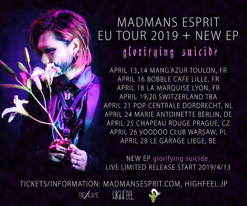 Pour célébrer cette venue en Europe, Madmans Esprit dévoilera en exclusivité son nouvel EP “gloryfying suicide” lors de sa tournée, où l’opus sera donc disponible à l’achat sur les stands de merchandising des différentes dates de la tournée, et ce dès le 13 avril.