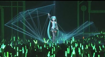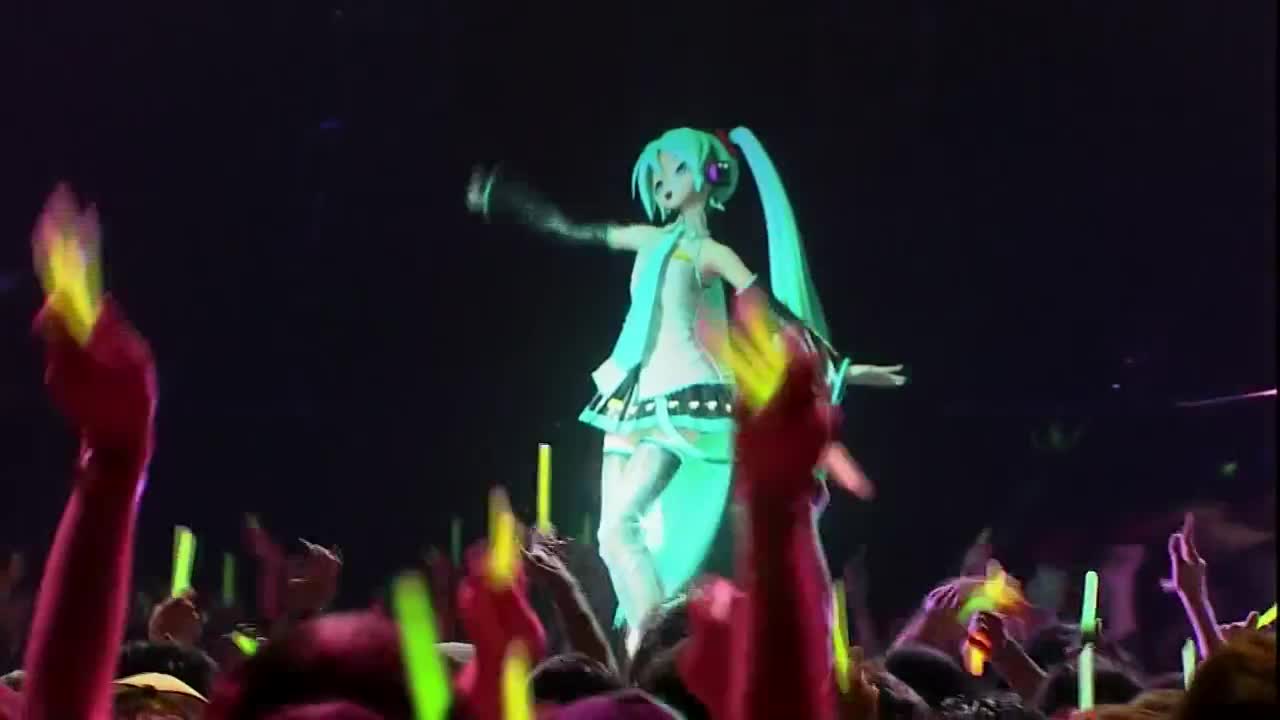 Face à un écran affichant des images lumineuses surnaturelles, sa personne réfléchie dans les deux grands écrans supplémentaires de chaque côté de la scène et sur une musique alliant les véritables musiciens aux sons techno, Hatsune Miku est venue performer ses titres les plus connus, notamment Thousand Cherry Blossoms (appelée aussi One Thousand Cherry Trees, cela dépend de la traduction) et Roméo et Juliette. La jeune femme est apparue dans sa tenue la plus célèbre, ses deux couettes bleues assorties à sa robe au style d’écolière, mais n’a pas manqué de changer de tenue entre les chansons. Ses chorégraphies étaient réussies à la perfection, et elle n’a pas manqué de tourner, de sauter et de virevolter, au plus grand plaisir des fans.