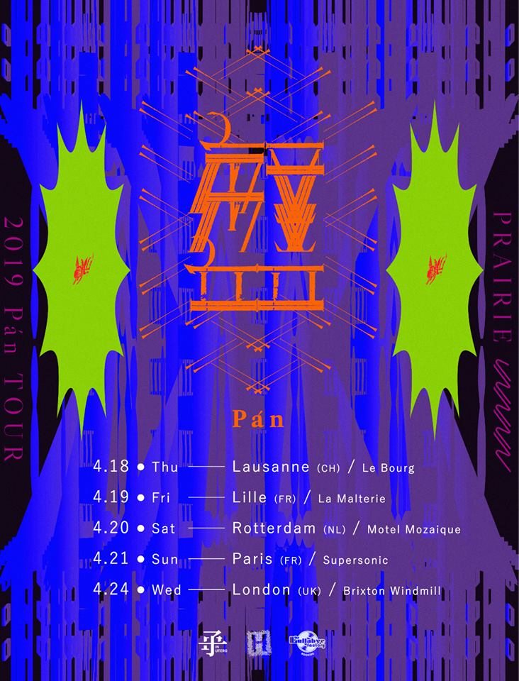 Formé en 2010 sur l’île de Taïwan, la quintette folk – qui puise le plus grand de son inspiration dans la nature – se produira dans la ville de Lille le 19 avril, à La Malterie, et le 21 avril dans notre capitale, au Supersonic. Voici les différents posters promotionnels sortis pour les dates françaises :