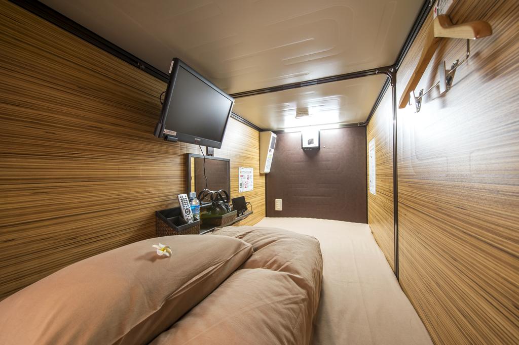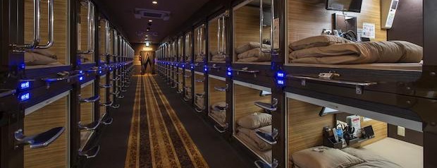 Les hôtels capsules sont des structures typiquement japonaises dont l’objectif est d’optimiser l’espace au maximum. De cette façon, les chambres de ces hôtels se limitent à des espaces très restreints sous la forme d’une cabine-lit. Les capsules sont souvent alignés le long d’un couloir, superposées par deux, et mesurent environ 2 mètres de long sur 1 mètre de largeur pour 1,20 mètres de hauteur. Il est évidemment difficile d’y faire autre chose que dormir, bien qu’on y trouve souvent des télévisions, et parfois certains autres équipements.
