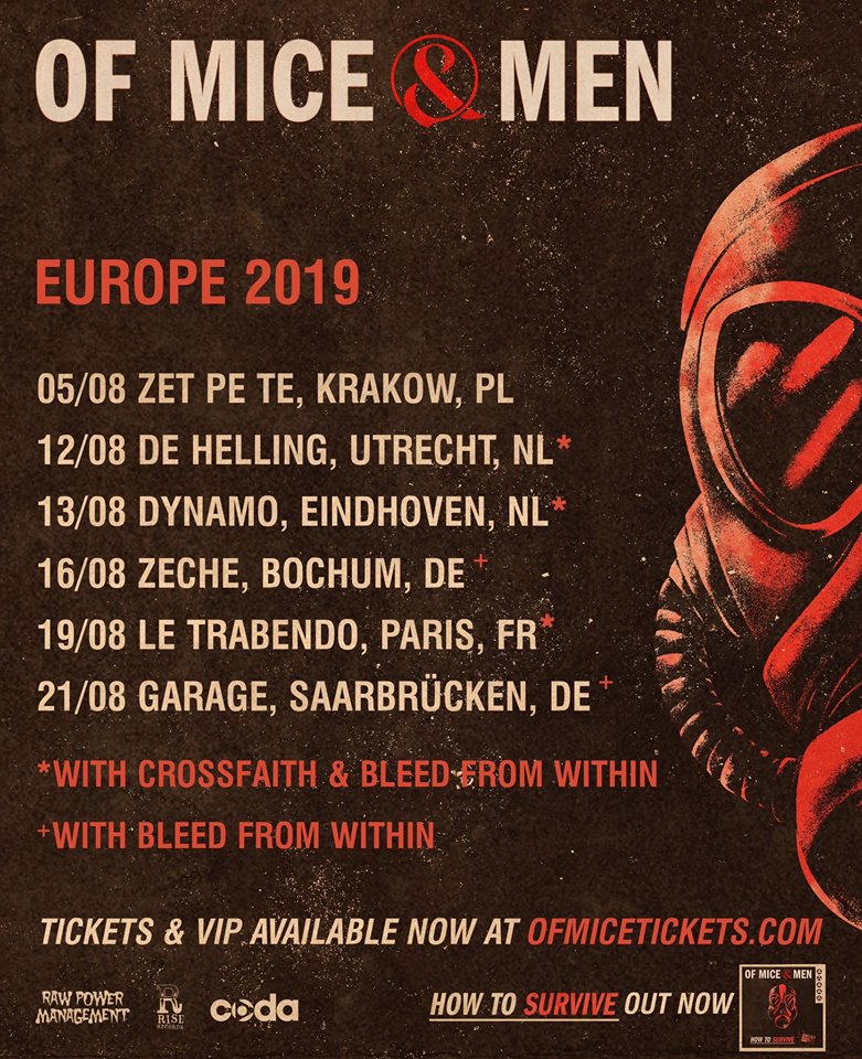 Voici le poster promotionnel de la tournée d’Of Mice & Men, dont Crossfaith assureront la première partie sur la moitié des dates :