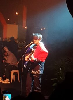 En effet, le jeune homme a entamé son concert avec un de ses titres les plus connus et les plus émouvants, “Sun & Moon”. Simplement accompagné de son micro, Sam Kim a ému la salle, par son sourire et sa passion.