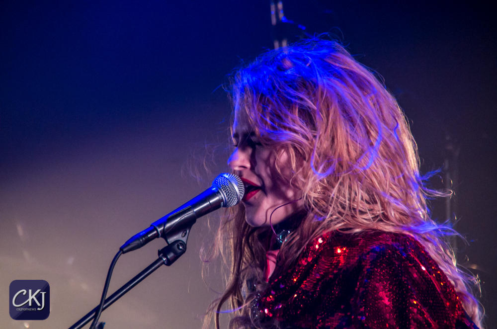“Merci pour les applaudissements. Je suis très heureuse de revenir à Paris, la ville du rock. Je sais dire “où sont les toilettes ?” ! (rires)