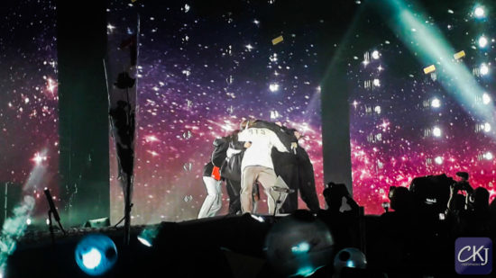 Le concert approche de sa fin, et l’heure est au discours final, au plus grand désarroi des fans. L’étonnement est général chez les membres, qui se délectent d’entendre les fans chanter un “joyeux anniversaire”, à l’occasion de leur 6 ans. Après des vives remerciements, place à une photo collective, les poings levés, façon “super-héro indestructible”.