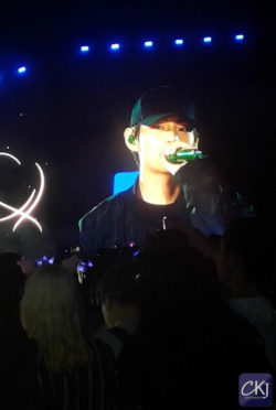 “Aujourd’hui était vraiment un bon concert. Demain nous repartons en Corée mais nous n’avons vraiment aucun regret. J’étais vraiment heureux et j’espère vous revoir l’année prochaine. Je n’ai pas une bonne prononciation mais j’ai quand même préparé une phrase : ‘Paris, si vous nous aimez, vous pouvez nous dire en français que vous nous aimez. […] J’aime vraiment Paris, je n’oublierai pas et je reviendrai.’