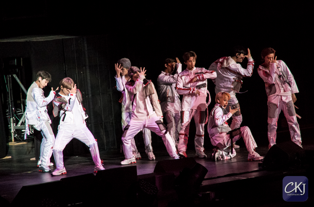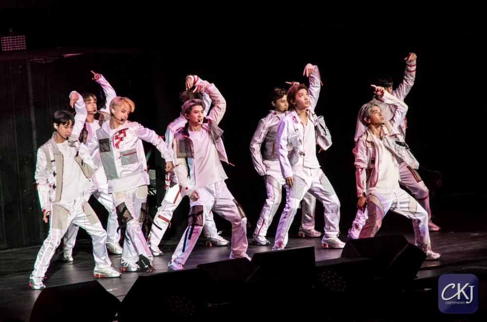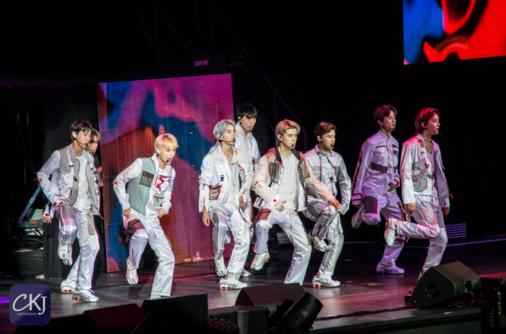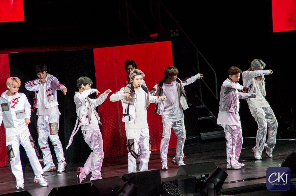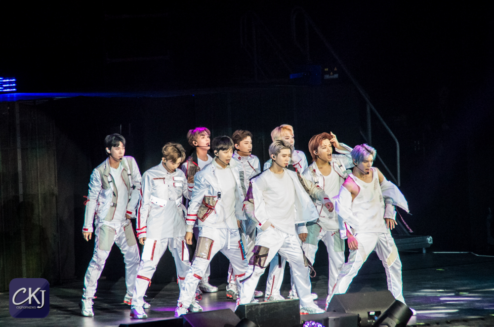 NCT 127, l’unité la plus mise en avant des NCT, a donc eu la chance de faire sa première tournée mondiale, placée sous le thème “The Origin“. L’équipe s’est vue ravie d’assister à un show façon SM et de pouvoir apprécier en live les performances explosives de Taeyong, Mark, Johnny, Yuta, Jaehyun, Doyoung, Taeil, Jungwoo et Haechan. À l’évidence, c’est le moins qu’on puisse dire, cette série de concerts fait toujours honneur à leur nom complet “Neo Culture Technology” que les garçons, sans Winwin – membre de l’unité, mais mis à l’écart depuis quelques temps –, ont servi au public un concert exceptionnel, où design, lumière futuriste et scénographie bluffante – voire risquée – se sont côtoyés toute la soirée, pour un spectacle au paroxysme de son ambition !