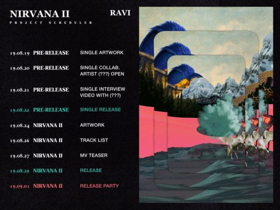 Le 18 août, Ravi a officiellement annoncé la sortie de sa quatrième mixtape solo intitulé “Nirvana II“. Il a également dévoilé un calendrier détaillé qui révèle que la mixtape complète sortira le 29 août mais qu’un premier single sortira quelques jours plus tôt, le 22 août.