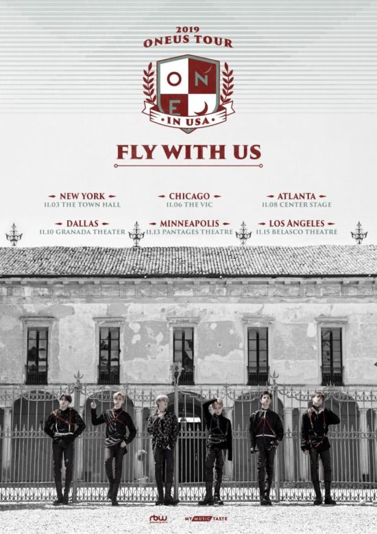 La tournée nommée “FLY WITH US” donnera pour la première fois l’occasion aux fans de voir ONEUS à travers plusieurs villes américaines. Cette tournée a été organisée par la plateforme MyMusicTaste, celle-ci étant un service qui permet aux fans de se mobiliser pour donner lieu à des concerts.