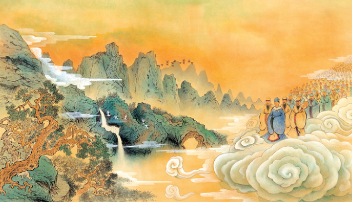 Hwanin, le “Seigneur du Ciel” et père de Hwanung, a permis à son fils et 3000 partisans sous ses ordres de descendre sur terre par le mont Paekdu, situé aujourd’hui à la frontière entre la Chine et la Corée du Nord. C’est de la que vient le nom “Gaecheon(jeol)” qui se traduit littéralement par “Ouverture du ciel“, se référant à la descente de Hwanung sur terre pour vivre au milieu de l’humanité.