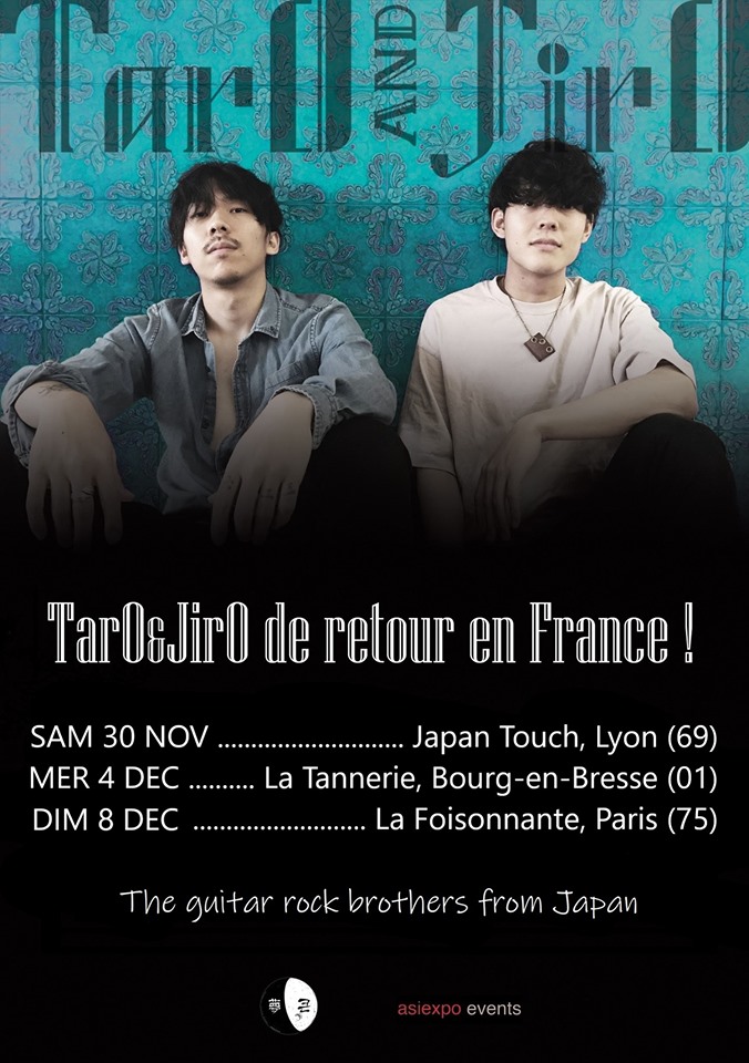 TarO&JirO donneront pas moins de trois performances en France, la première à la Japan Touch de Lyon le 30 novembre. Pour cette date, il vous faudra simplement vous munir d’un billet pour la convention (13€ pour la journée). En ce qui concerne le deux autres dates, respectivement le 4 décembre à Bourg-en-Bresse (La Tannerie) et le 8 décembre à Paris (La Foisonnante), elles seront toutes les deux gratuites, vous n’avez donc aucun excuse pour les rater !