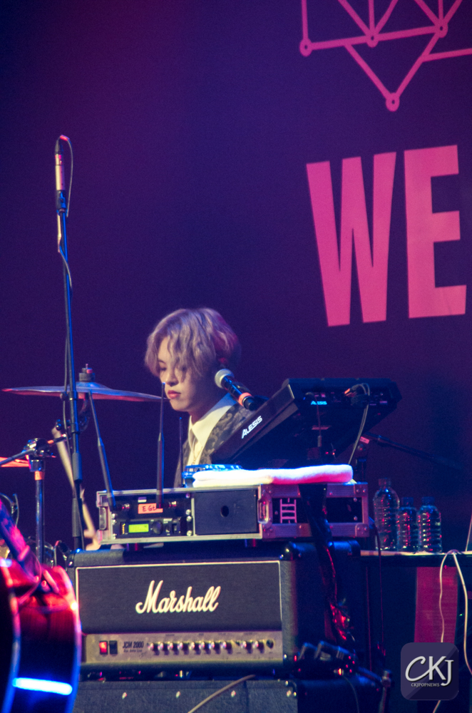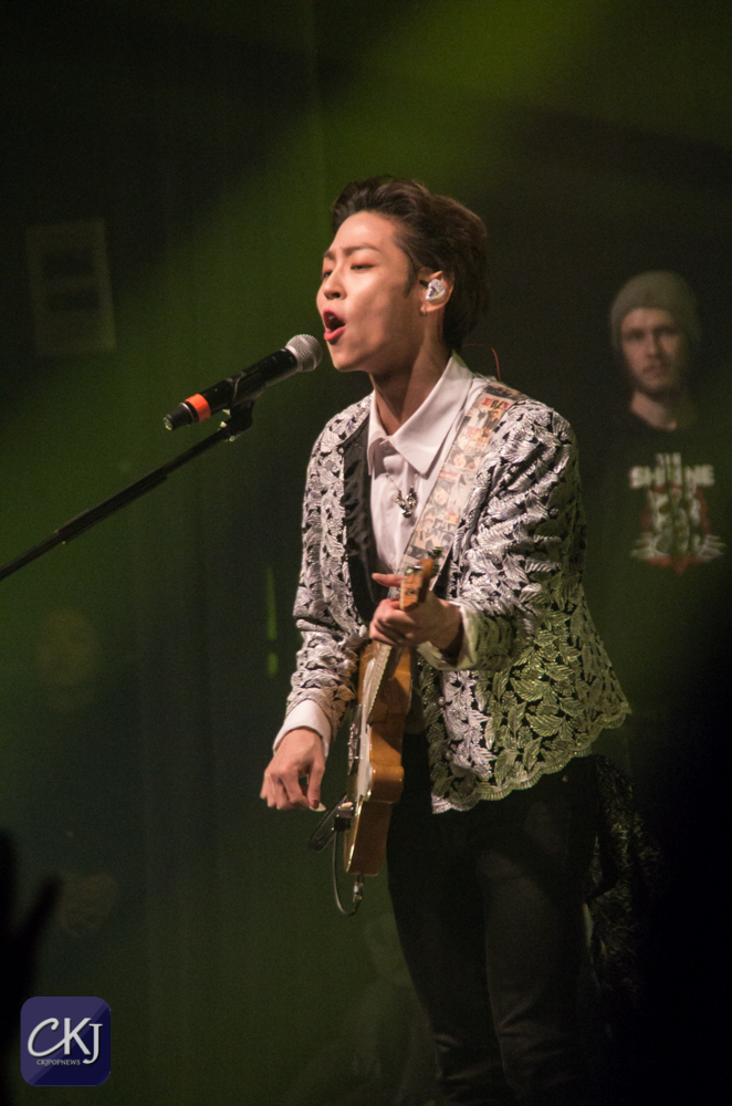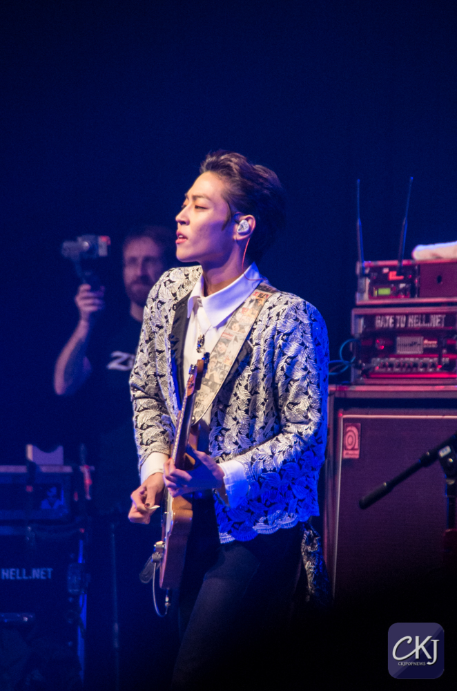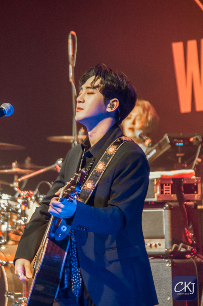 Dojoon et Woosung prennent la parole pour saluer les fans à l’occasion du premier discours de la soirée. Malheureusement, Woosung semble s’être ouvert le doigt en début de concert à cause des cordes de la guitare et ne cesse alors de s’essuyer. Très vite, le chanteur est amené à parfois délaisser son instrument pour éviter d’intensifier son écorchure. Toutefois, ce petit incident n’a aucune répercussion sur le concert : Woosung alloue à merveille sa renommée de frontman.