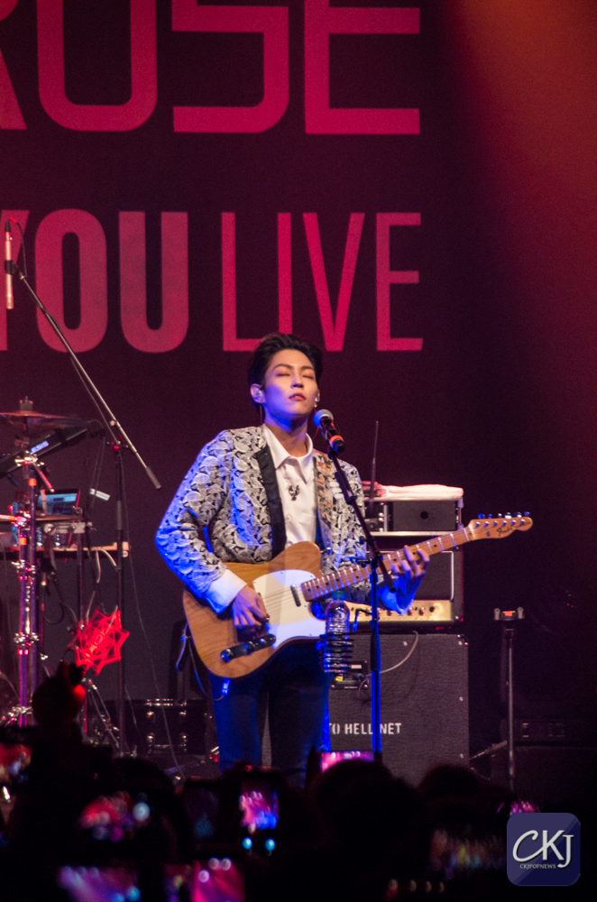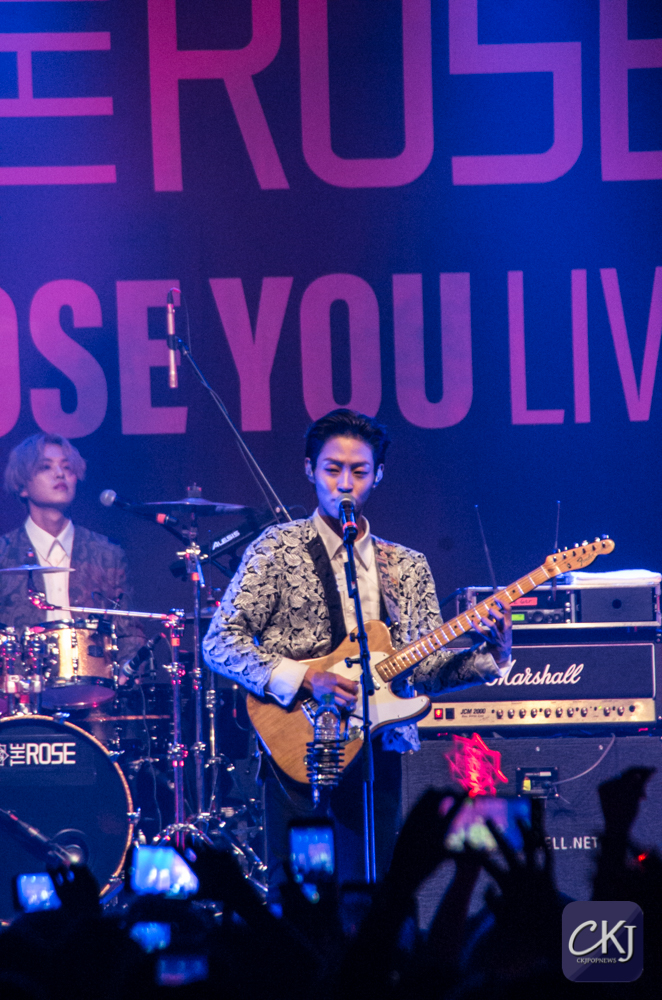 Woosung, Dojoon, Hajoon et Jaehyeong débarquent sur scène dans des costumes flamboyants pour assumer que la soirée sera placée sous le signe de l’émotion en interprétant la ballade I.L.Y. Et oui, The Rose veulent marquer le coup en déclarant leur amour aux fans, décidément bien fidèles. I.L.Y, c’est typiquement le morceau qui met tout le monde d’accord et qui permet de savourer l’harmonie entre les quatre instrumentistes, tout en se laissant bercer par le timbre de voix exceptionnel du leader Woosung. Le parti-pris émotionnel ne s’essouffle pas : le groupe enchaîne sur Insomnia, un titre qui honore la réputation très romantique de ses interprètes. La ballade au tempo modéré a l’air de plaire aux fans qui se délectent de cette mise à nu aussi rapide. The Rose n’ont pas pour habitude de faire dans la demi-mesure : la sincérité est leur maître-mot et on salue cette exposition habile et authentique de leur affection.