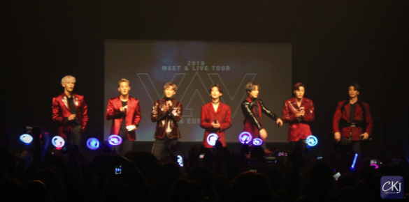 Après un nouveau moment d’interaction, Spotlight et She’s Mine prennent la relève dans une ambiance de feu. Les performances ont du cran et satisfont l’audience. A l’occasion d’un autre ment, le groupe a pour surprise de recevoir un cadeau spécial concocté par la fanbase, un trophée rare tout spécialement pensé pour lui, un souvenir donc unique de ce voyage parisien ! Acclamés par un chant de supporter, les membres décident qu’il est temps d’immortaliser l’instant en prenant une photo… ou disons le, quelques dizaines de photos ! Avec des “VAV” répétés en rythme, le groupe annonce être “surpris par tout le bruit fait”. Les footstompings vrombissent, et les acclamations s’amplifient. Les VAV ne risquent pas d’oublier cet instant !