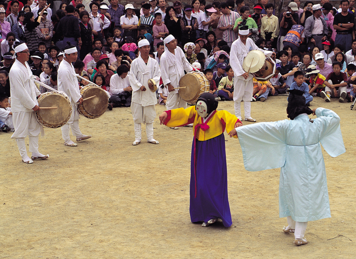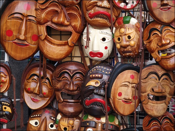 Durant des siècles, chaque province de Corée avait sa propre version des masques divertissants, suivant les compétences des artisans présents sur leur territoire et les dirigeants de chaque région. Les masques Hahoe sont assez caractéristiques, chaque trait de visages est gravé directement dans le bois. Chaque année, ces magnifiques objets artisanaux sont présentés lors du festival de la danse des masques à Andong.