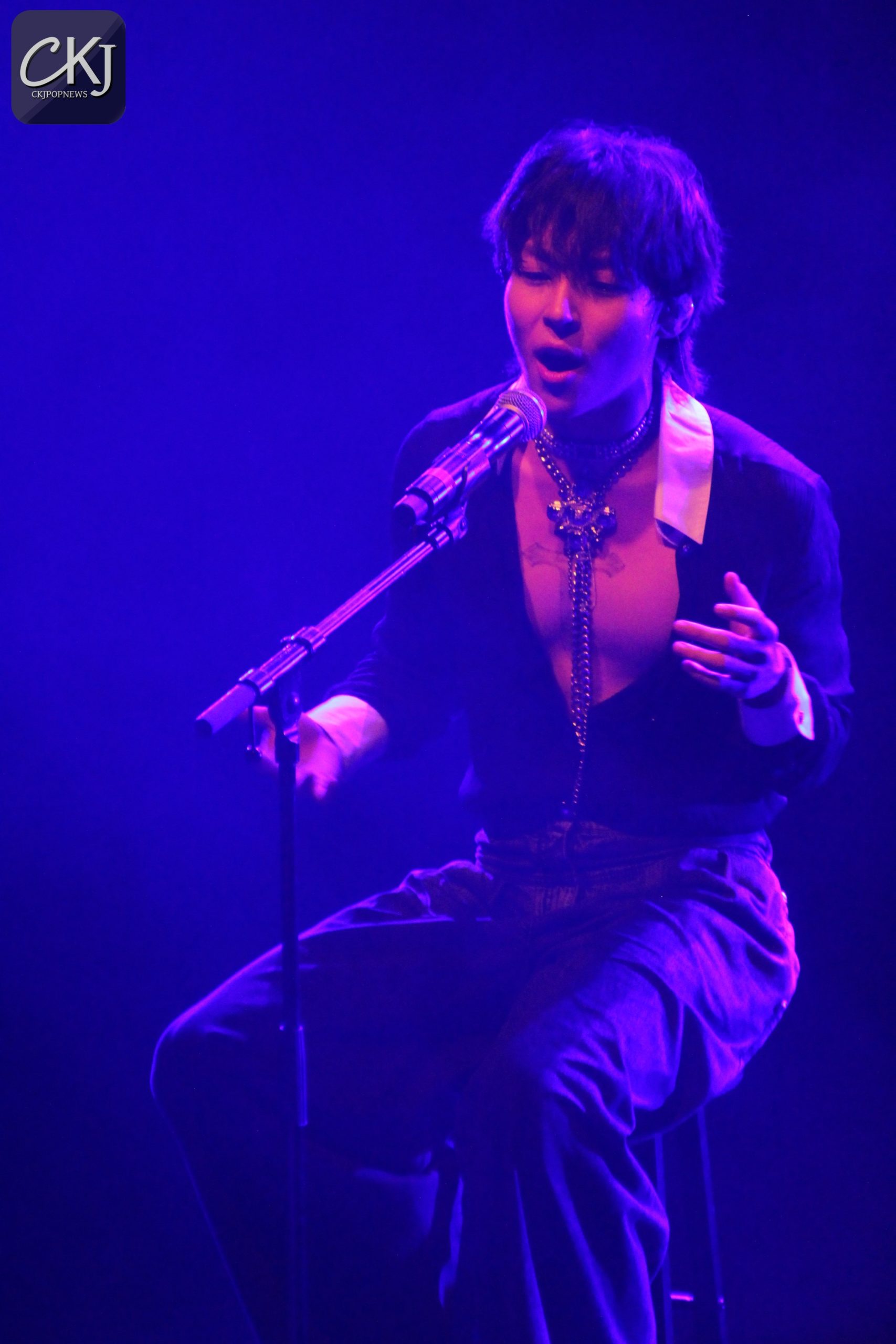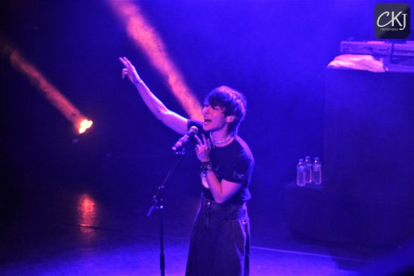 Ultra-sensuel tout en Chanel, dans un look mi-grunge, mi 70s, la chemise dévoilant des pectoraux dessinés et la maxi jupe-culotte flattant une silhouette androgyne, Woosung est à l’Alhambra le 18 mai au soir ce qu’est un artiste sur toute autre scène : un prince. Un terme juste d’autant plus que nous aura souvent traversé à l’esprit des images d’un autre Prince, révolutionnaire de la musique. A cette évocation, on s’amuse à se remémorer ces instants scéniques où Woosung, charismatique et auratique, épanouit en solo, a déployé ses ailes. Son showcase, intitulé MOTH, le titre éponyme de son nouvel EP, on vous le raconte de suite.