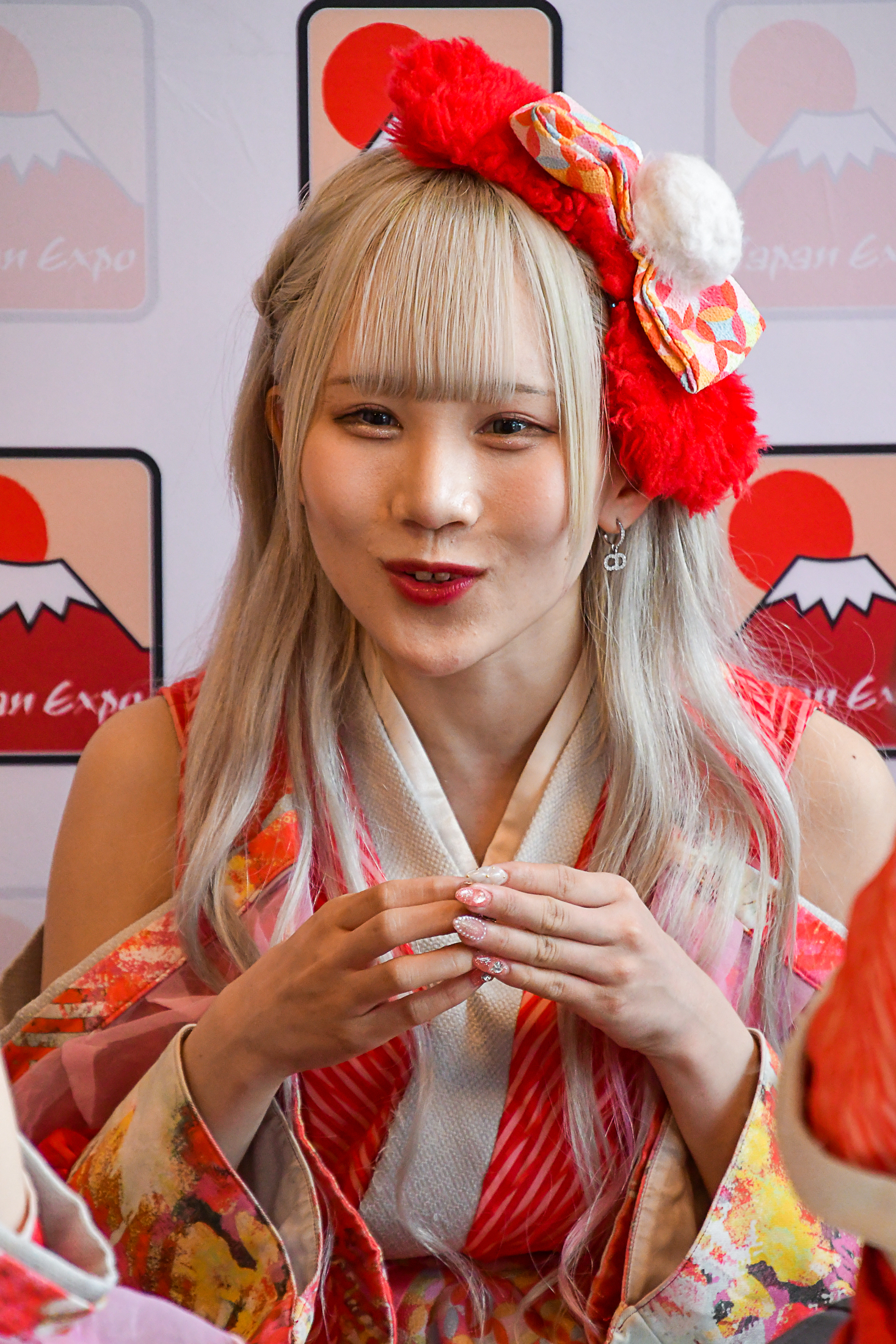 Asahina Yuumi : Notre participation à Japan Expo, c’est nos premiers pas à l’étranger. Nous sommes venues à Paris pour la première fois il y a cinq ans pour cette convention, et aussi à Marseille la même année. Nous aimerions revenir à nouveau pour faire monter le nombre de fans en France et partout dans le monde.