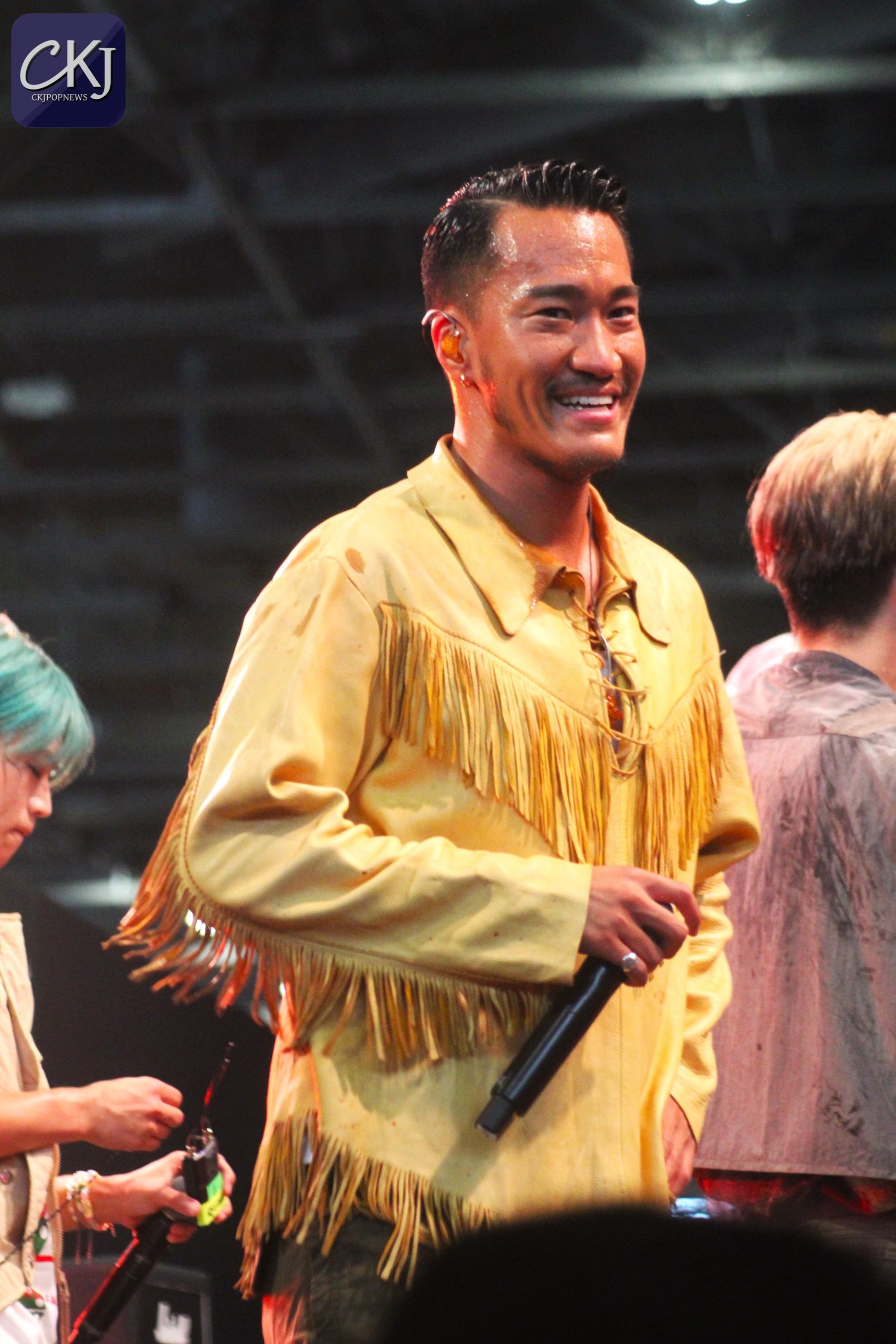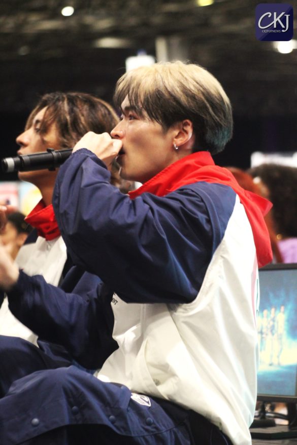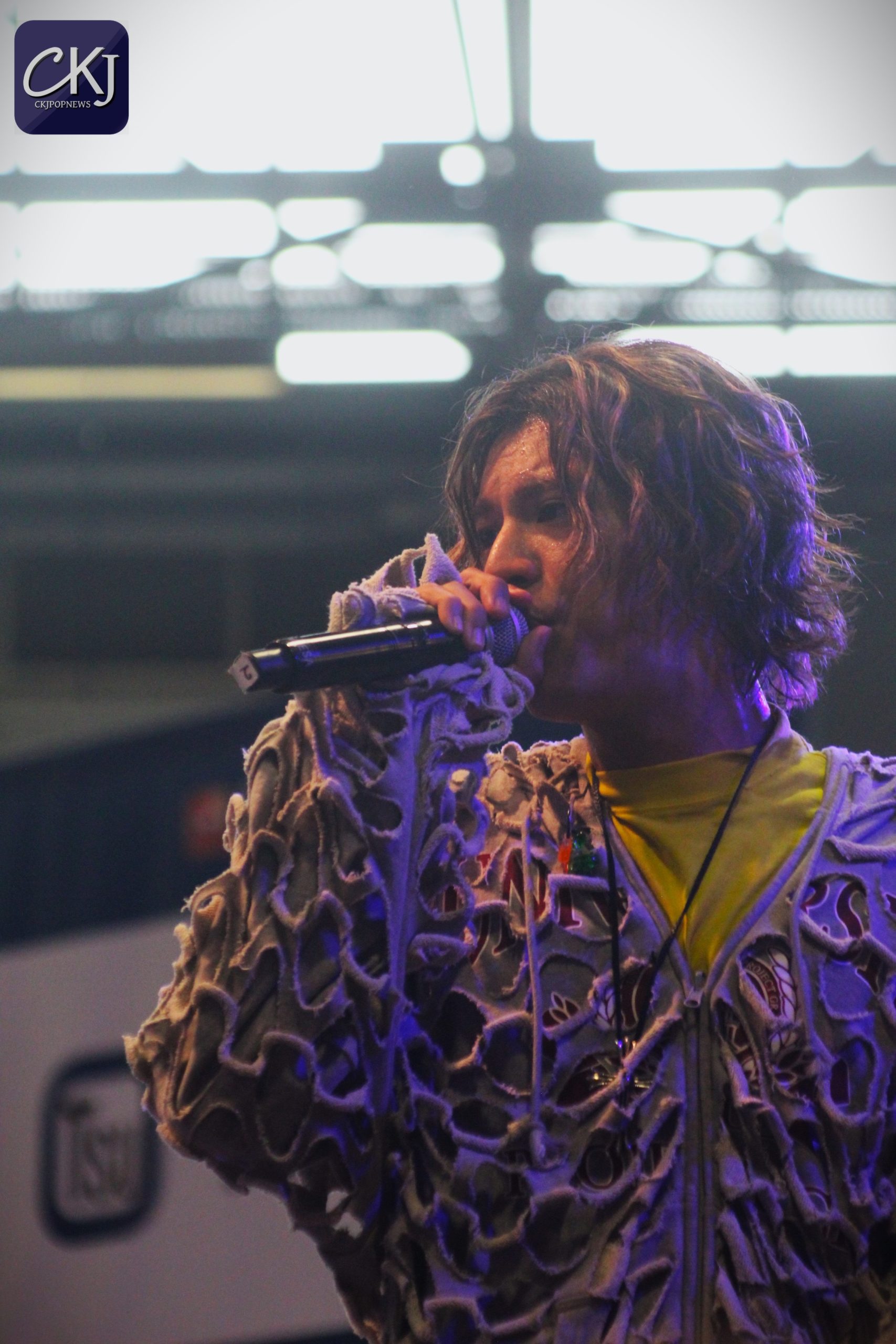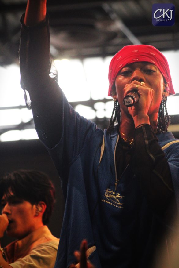 Direction la scène Kamo, le vendredi 12, pour découvrir des PSYCHIC FEVER en plein workshop, dans une tenue de sport aussi confortable qu’on peut l’être en salle de danse, pour enseigner la chorégraphie de Just Like That. Évidemment, on en attendait pas moins des fans français qui connaissaient déjà pour la plupart les pas de danse. Après une heure d’entraînement intensif, le groupe invite les fans à rejoindre la scène et danser à leurs côtés. Pas moins d’une vingtaine de personnes finissent ensuite par rejoindre la scène, dans un presque chaos qu’il aura fallu stopper. Les garçons semblent surpris de l’entrain de la foule. Loin d’être familiers des scènes françaises, ils se soumettent finalement au jeu de l’hymne de The White Stripes, le traditionnel riff de Seven Nation Army chanté par les fans.
