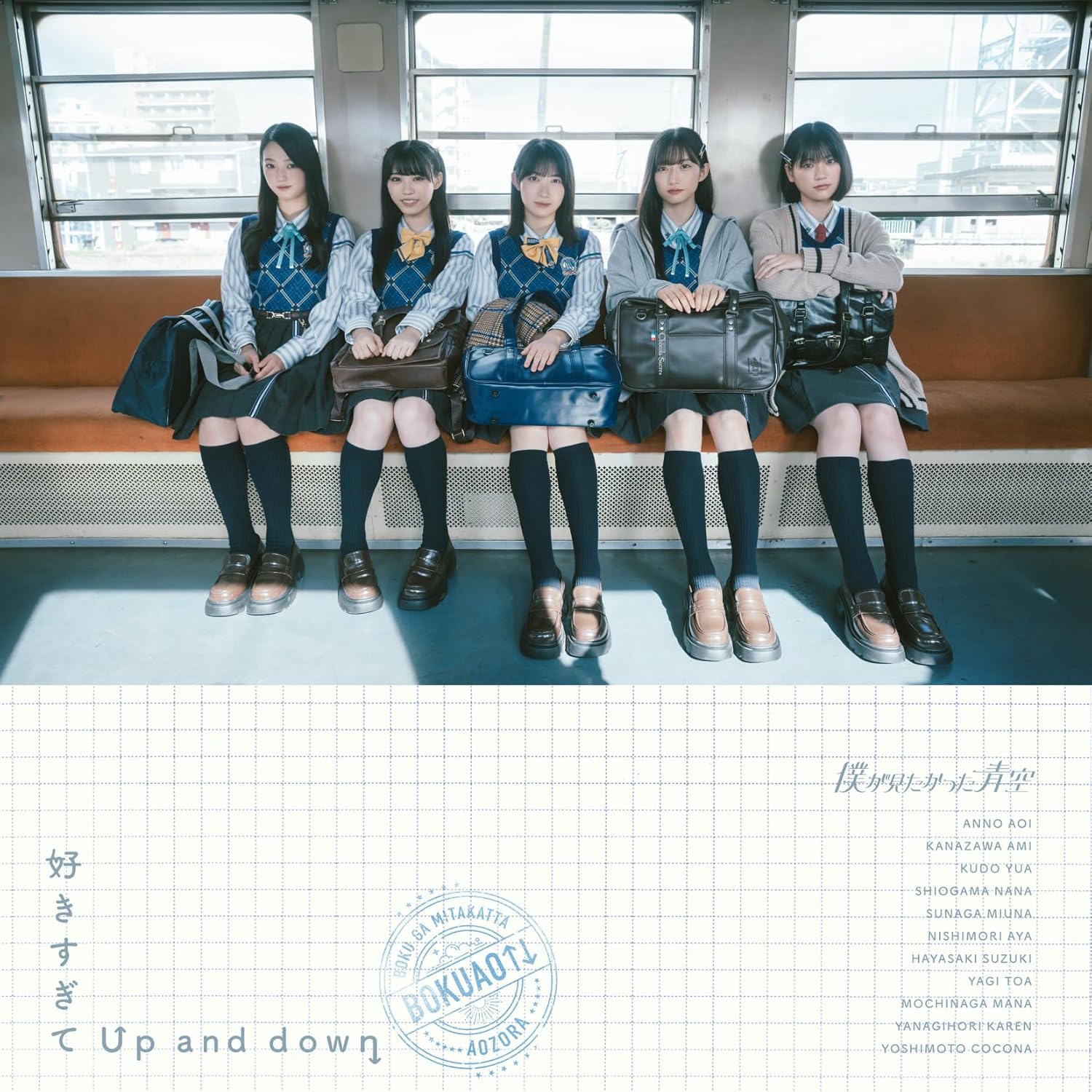 Le groupe japonais d’idoles Boku ga Mitakatta Aozora (ou BokuAo) a sorti le 13 novembre dernier son quatrième single ” Sukisugite Up and down“. La chanson titre a été choisie pour être l’ending theme des épisodes du crénaux “Mercredi Platinum Night“. Les titres “Sora-iro no Mizushibuki” et “My friends” servent de thème pour l’adaptation en film animé de “Ganbatte Ikimasshoi“. L’opus est disponible en 6 versions : CD Régulier, CD+Bluray Type A, CD+Bluray Type B, CD+Bluray Type C, CD Event Edition et CD+Bluray Live.