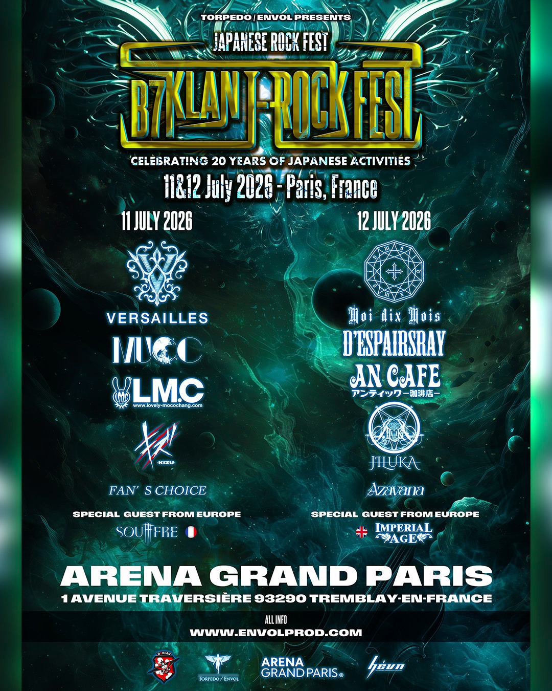 C’est le grand défi que s’est lancé le producteur Bertrand Torpedo, organisateur de concerts chez Envol Prod et Torpedo, celui de réunir les mastodontes de la scène visual kei japonaise lors d’un festival unique en son genre, le B7KLAN J-Rock Fest.