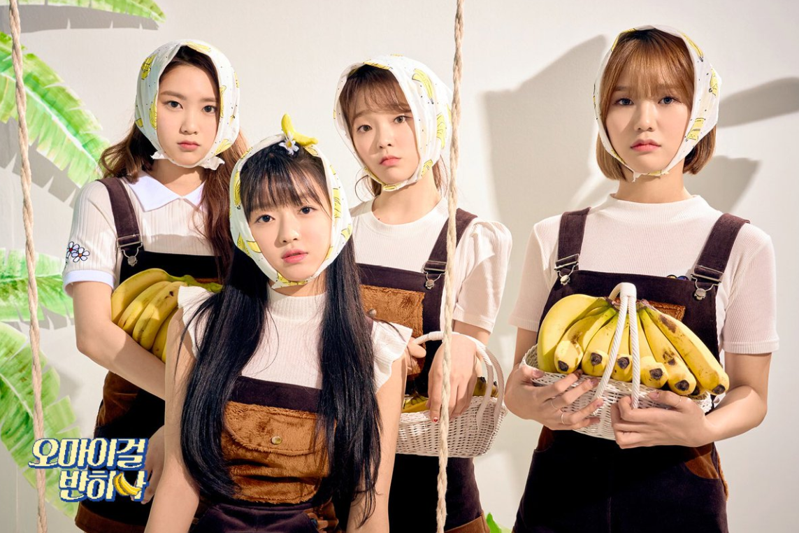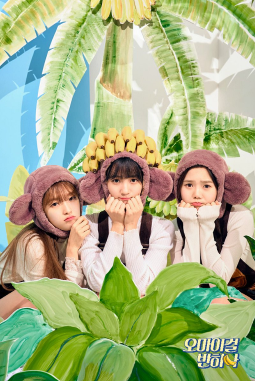 Deux photos des sous groupes qu’elles forment entre les singes allergiques aux bananes et celles qui ne le sont pas ont également été révélé. Hyojung, Binnie et Arin représentent les singes qui sont allergiques aux bananes et Mimi, YooA, Seunghee et Jiho sont celles qui ne le sont pas :