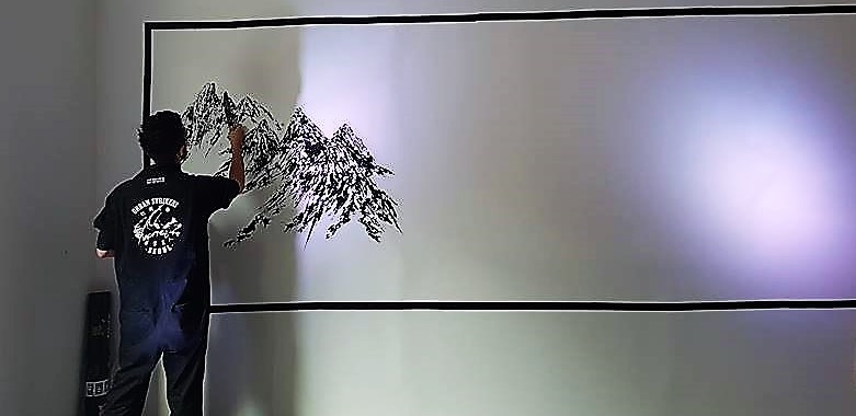 La beauté de son art se trouve aussi dans cette manière de n’utiliser que très peu de couleurs, et de préférer le noir et le blanc, le noir s’apparentant alors à l’écriture calligraphique, et le blanc à l’espace. Dans la calligraphie traditionnelle, il faut aussi comprendre que le noir est ce qu’il y a de plus dense et de plus profond. C’est là où on a pu comprendre finalement toute l’inspiration de ce jeune artiste.