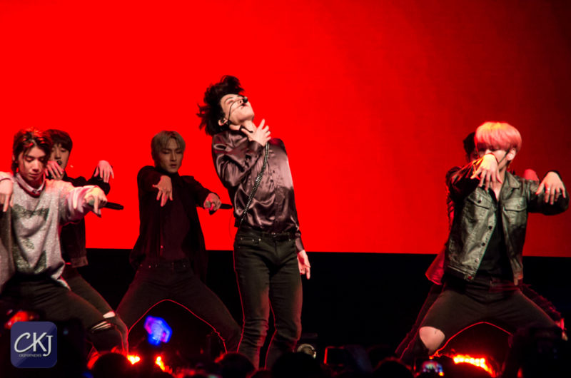 Le changement a été radical lorsque les deux rappeurs du groupe, Youngbin et Hwiyoung, sont venus prendre la relève avec le morceau “ZEROFF“, et qu’ils ont électrisé la foule grâce à des gestes larges et pleins de puissance, une performance en accord avec la lumière noire et rouge diffusée dans la salle à ce moment-là. Après avoir jeté un peu d’eau aux Fantasy dans la fosse, les deux jeunes hommes ont quitté la scène.