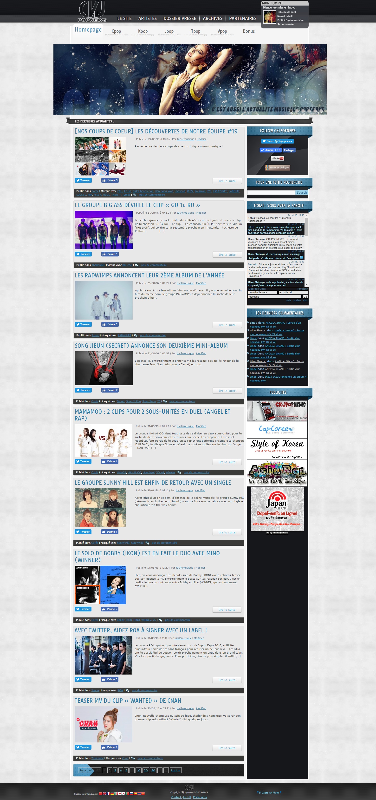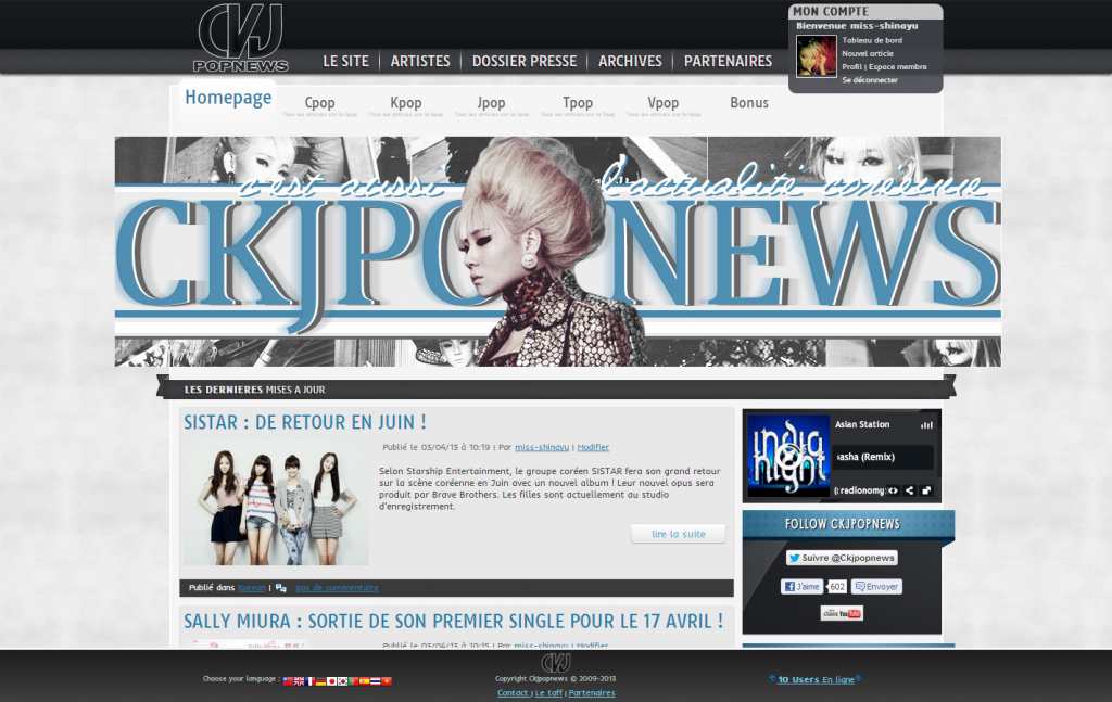 Versions by miss-shinayu 14 novembre 2009 – Toutes les versions du site : VERSION 1 : NAMIE AMURO Version 2 : Wonder Girls Version 3 – 4 minute Version 4 : Jolin Tsai VERSION 5 : KODA KUMI VERSION 6 : 6.4 VERSION 7 : VERSION 8 : Quelques différentes bannières utilisées pour cette version : VERSION 9 : Share FacebookTwitterPinterestEmail